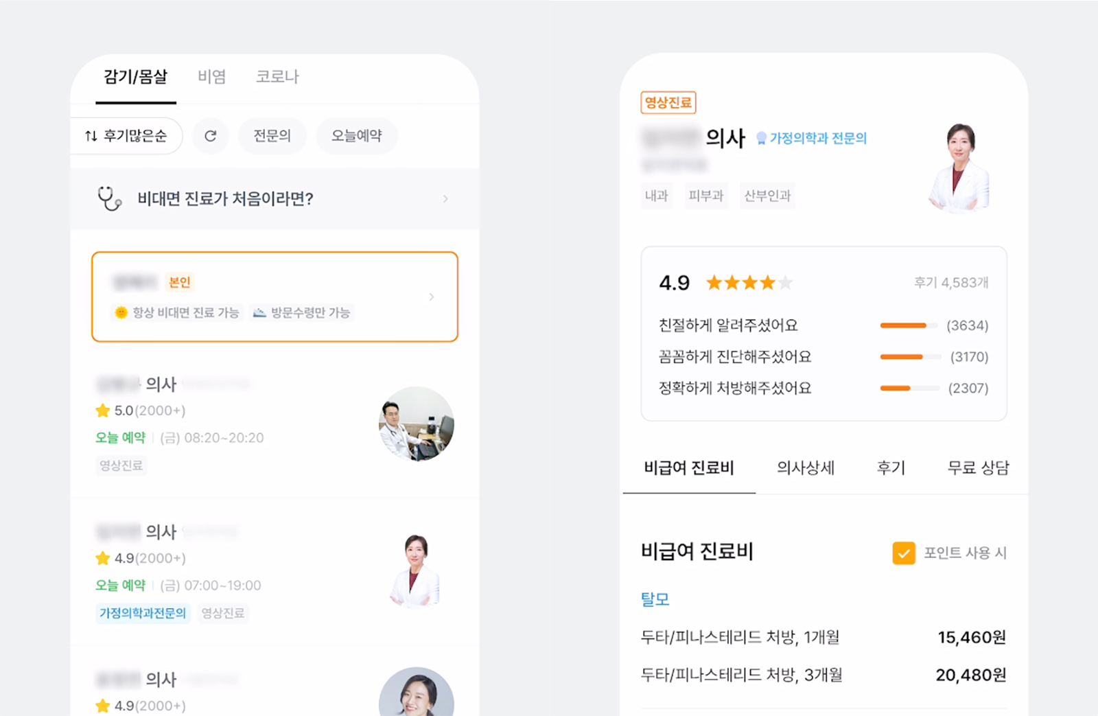 이글은 닥터나우 앱을 기준으로 작성하였습니다. 다른 앱들도 비슷합니다.