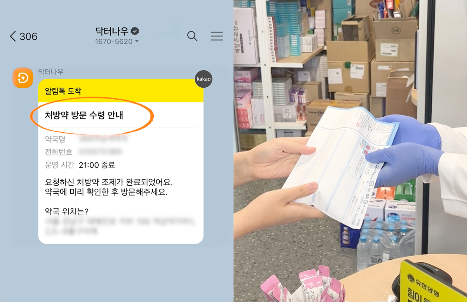 약 조제가 완료되면 카카오 알림톡으로 알림을 받을 수 있습니다. 알림을 받은 후 약국에 방문해 처방약을 수령하면 됩니다.